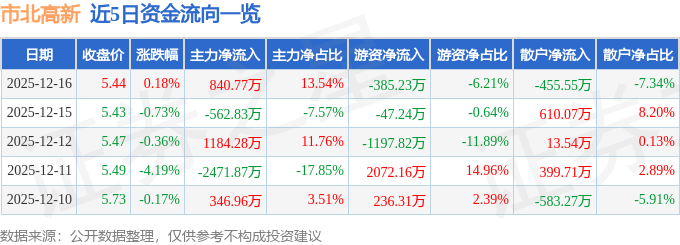 本站消息东南亚区域,截至2025年12月16日收盘,市北高新(600604)报收于5.44元,上涨0.18%,换手率0.81%,成交量11.4万手,成交额6207.56万元。