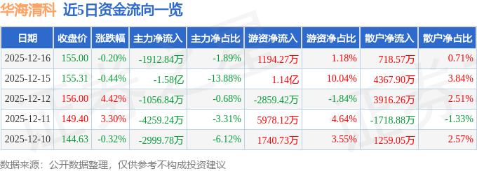 本站消息,截至2025年12月16日收盘,华海清科(688120)报收于155.0元,下跌0.2%,换手率1.83%孩子在旁边,成交量6.49万手,成交额10.11亿元。